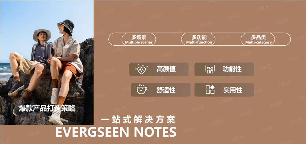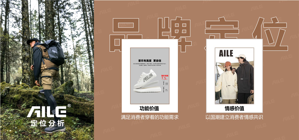 AILE(愛樂)定位輕潮運動品牌,是品牌運作過程中,不斷探索,挖掘來滿足中產(chǎn)階級未被滿足的潮流需求,他們喜歡時尚、輕量運動,注重與熱愛戶外運動、突出城市輕量化功能的創(chuàng)新,凸顯時尚感和高顏值,用戶愿意為之付出溢價,并且喜歡表達自己的時尚度的同時并能夠引領潮流的輕年族群。
